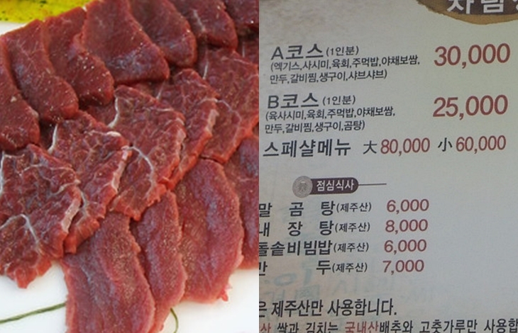 흑돼지와 함께 제주도를 대표하는 고기로 말고기가 있습니다. 제주도를 제외하고는 말고기를 취급하는 곳을 찾기 힘들기 때문에 제주도를 찾는 관광객들에게 말고기는 아주 낯선 음식이라고 할 수 있죠. 그만큼 말고기를 드셔 보고 싶어 하시는 분들도 많습니다. 하지만 의외로 말고기의 대한 평가는 호불호가 갈리고 있죠. 일반적으로 제주도에서 판매하는 말고기의 경우에는 코스로 찾는 경우들이 많습니다. 진액부터 시작해 사시미, 육회 등 다양한 코스로 말고기를 즐길 수 있는데요.