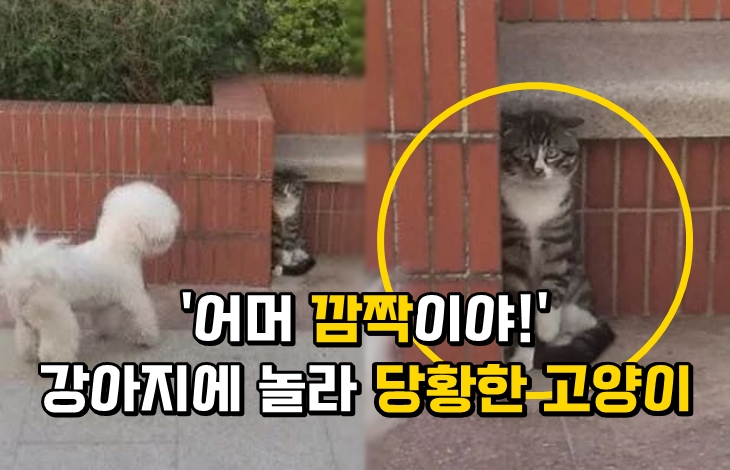 이에 많은 네티즌들은 "아무래도 강아지가 고양이 스타일이 아니었나 보네요." "구석에 숨어 있는 고양이 표정이 너무 리얼해요" "정말로 진으로 당황한 거 같은데요." "정말 눈이 크네요" "아이고 귀여워요"등 다양한 반응들을 보이고 있습니다.