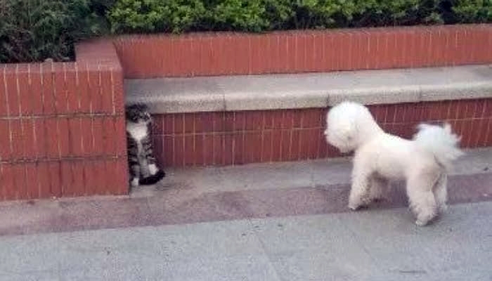 중국 매체 '소호망(搜狐网)'을 통해 소개된 사연으로 길에서 강아지를 만나 어쩔 줄 몰라하는 고양이의 모습이 담긴 사진이 화제가 된 적이 있습니다. 공개된 사진에 등장하는 고양이는 한쪽 구석에 숨어 눈을 크게 뜨며 당황한 표정이 역력해 보이고 있죠.