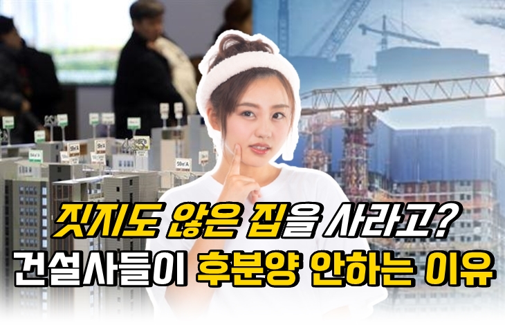이러한 방식을 흔히 '선분양'이라고 부르죠. 이런 선분양은 흔히 아파트를 미리 예약한다는 점에서 '예약판매'라고 불리고 있습니다. 그런데 최근 이런 선분양으로 지어진 아파트에서 각종 하자들이 발생되면서 선분양의 단점들이 지적되면서 후분양이 그 대책으로 떠오르고 있죠. 하지만 건설사들은 여러 가지 이유로 후분양에 난색을 표하고 있는데요. 그렇다면 과연 어떠한 이유로 건설사들은 후분양이 아닌 선분양을 더 선호하는 걸까요?