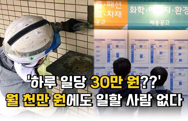 과거에는 '노가다'로 불리며 체력적으로 힘든 노동 직업군에 속하게 되면서 일할 사람을 찾기 어려웠다고 하는데요. 하지만 최근에는 취업난과 '평생직장'의 개념이 달라지면서 대기업 못지않은 급여를 받을 수 있다는 점에 많은 사람들이 몰리고 있습니다. 그렇다면 과연 하루 일당 30만 원, 월 천만 원 이상은 거뜬하게 벌 수 있다는 직업은 무엇일까요?