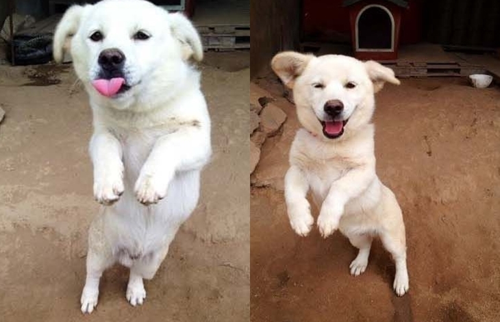 사진 속에 등장하는 강아지는 무엇이 그렇게도 좋은지 환하게 웃으며 마치 시골에 놀러 와 반갑다며 격하게 환영하는 듯한 제스처를 취하고 있는데요. 그 모습이 얼마나 유쾌하고 좋은지 보는 사람들로 하여금 어렸을 때 시골에 놀러 갔을 때 보았던 강아지들의 추억들을 되새이게 하고 있습니다.